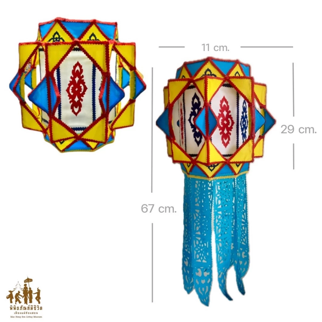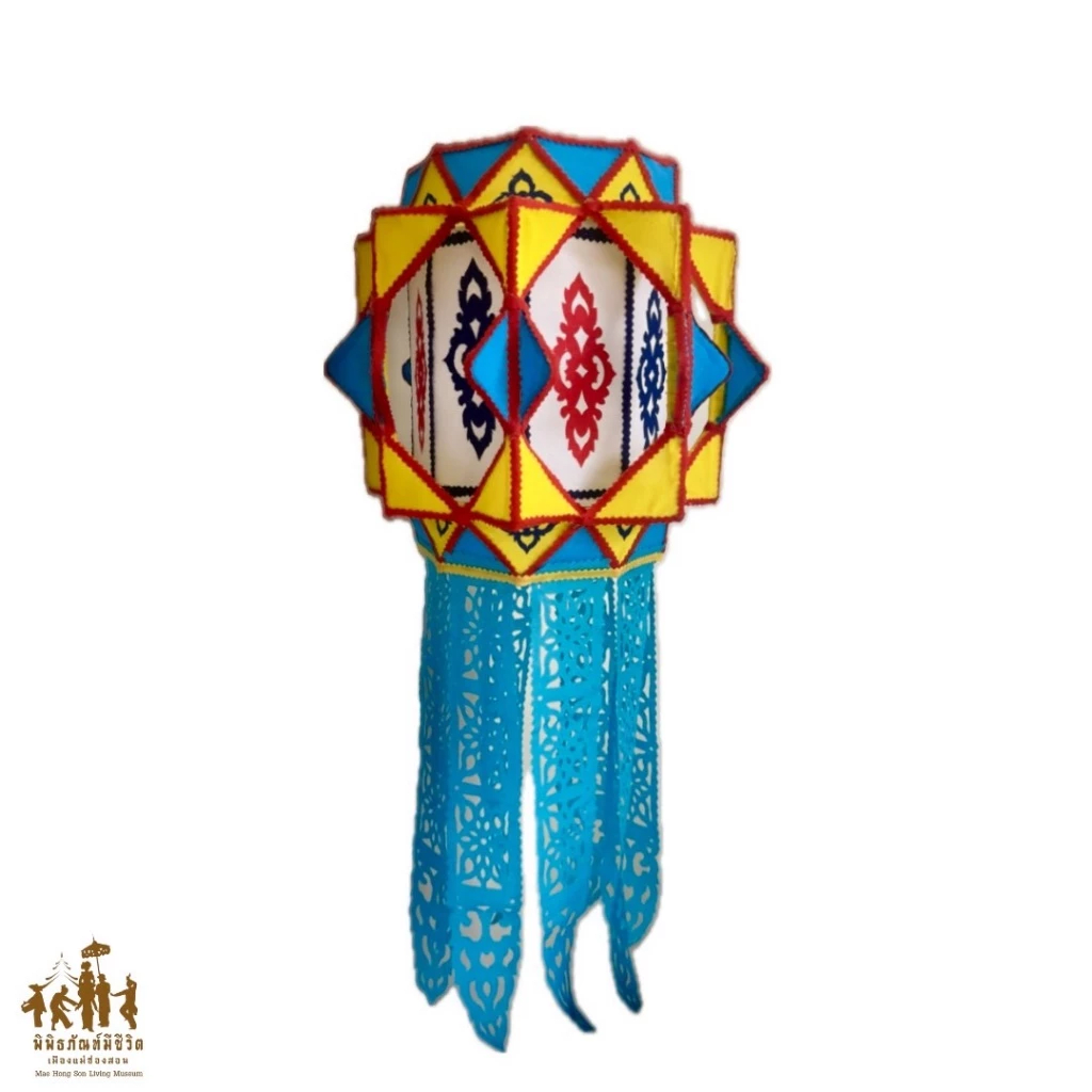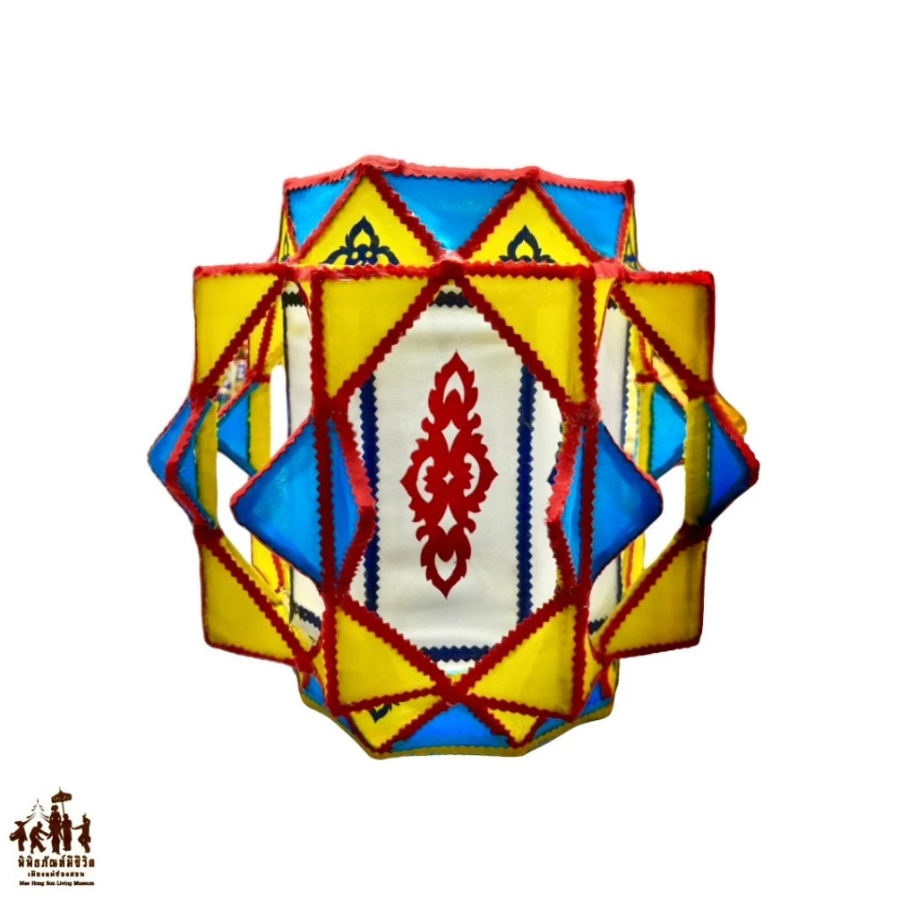 The Tai Yai octagonal lantern, known as “Khom Pra Tra,” is a distinctive form of traditional craftsmanship that reflects the rich cultural heritage of the Tai Yai ethnic group. With deep roots in Mae Hong Son province and parts of Northern Thailand, this lantern is more than a functional object—it is a symbol of worldview, lifestyle, belief, and the spirit of the Tai Yai community. Passed down through generations, its beauty manifests through light, color, and structure, each element rich with meaning. The octagonal shape of the Khom Pra Tra is not merely an aesthetic choice but holds profound symbolic significance. It represents balance, completeness, and the interconnectedness between humans and nature—core principles in the Tai Yai way of life, which values harmony and reverence for the earth, water, and natural light. The lantern's glow is more than physical illumination; it is regarded as the “Light of Dharma,” guiding the mind toward peace, wisdom, and mindfulness. These lanterns are traditionally used during significant festivals and spiritual ceremonies such as the End of Buddhist Lent, Loy Krathong, and ancestral offerings. Especially during Buddhist holidays, the lantern’s soft glow pierces the darkness, symbolizing a spiritual path toward goodness, honoring the Buddha, the Dharma, and sacred beliefs. It also creates an atmosphere of faith imbued with beauty, both visual and emotional.