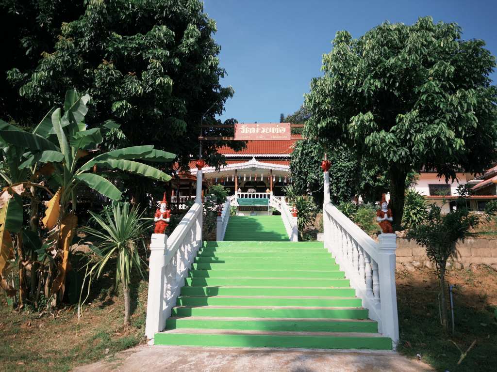 วัดหม่วยต่ออยู่ไม่ไกลจากตัวเมืองแม่ฮ่องสอน เดินทางสะดวก สามารถจัดทริปแวะต่อจากการไปสักการะ พระธาตุดอยกองมู ได้ในวันเดียวกัน