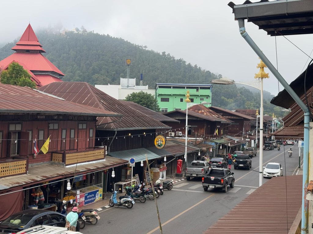 ตลอดแนวถนนมีร้านกาแฟบรรยากาศอบอุ่น ร้านขายผ้าทอมือ และของที่ระลึกจากชุมชน เช่น ผ้าพันคอ ผ้าทอกะเหรี่ยง และเครื่องประดับฝีมือท้องถิ่น ที่สะท้อนความภาคภูมิใจของผู้คนในพื้นที่